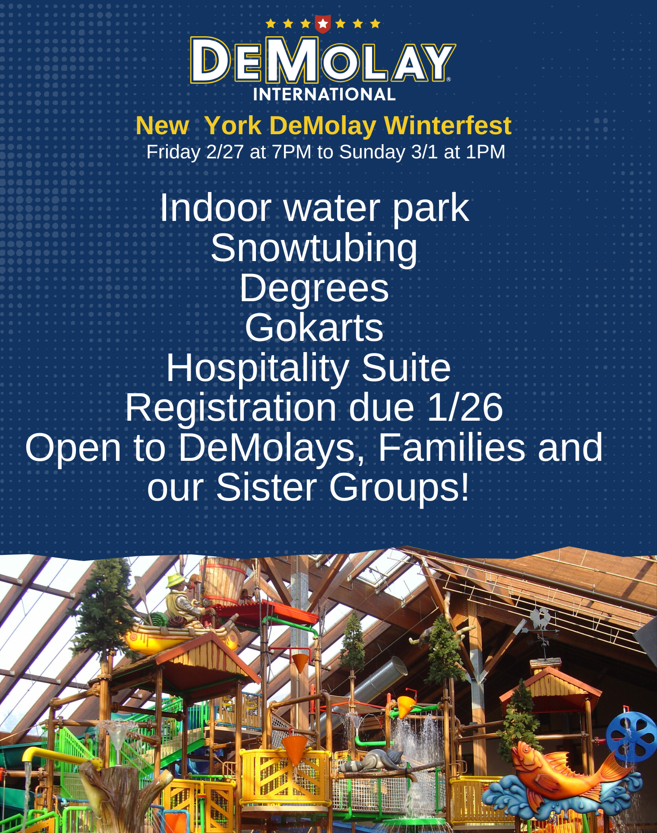 Dear DeMolays, Advisors, and Families: Winterfest 2026 is just around the corner! As we mentioned during FallFest we are from Friday, February 27th to Sunday, March 1st. Our host hotel